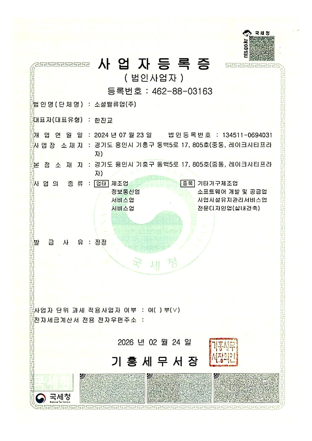| 본사 | 경기도 용인시 기흥구 동백5로 17, 중동 동백레이크시티프라자 805호 |